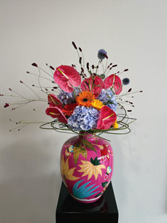 Another design was a very colorful vase, and Pascal matched the colors with the flowers.